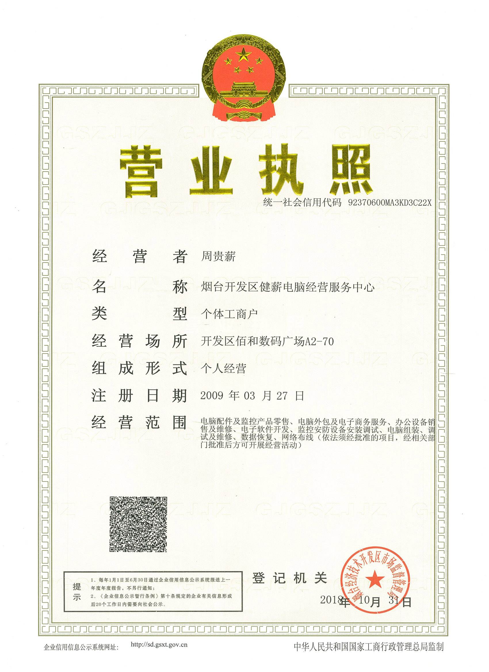 ‘烟台开发区健薪电脑经营服务中心’企业 【官方网址】